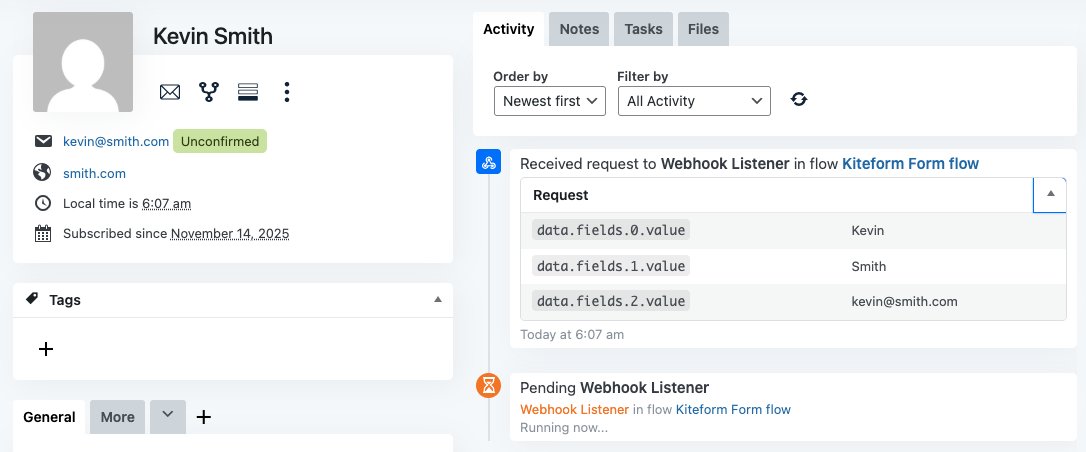 [ Save changes ] and then [ Update ] the flow. Complete one more form test to see the Contact is added to Groundhogg.