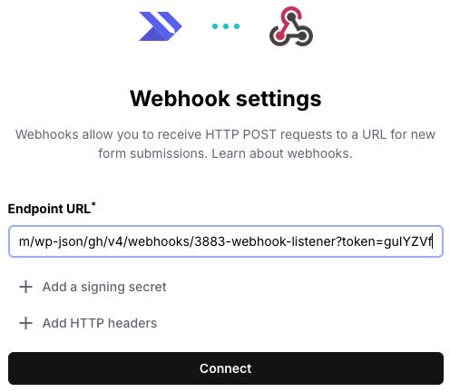 - Enter the URL you copied from the Webhook listener. [ Connect ]