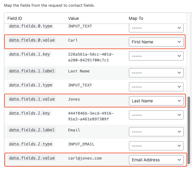 Fill in the fields and submit the form. Visit the Kiteform flow > Webhook Listener in Groundhogg and click the [ Map Request Fields ]